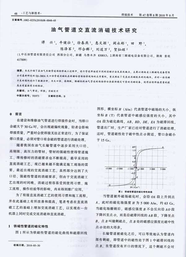 大口徑管道消磁機學術(shù)論文—《油氣管道交直流消磁技術(shù)研究》